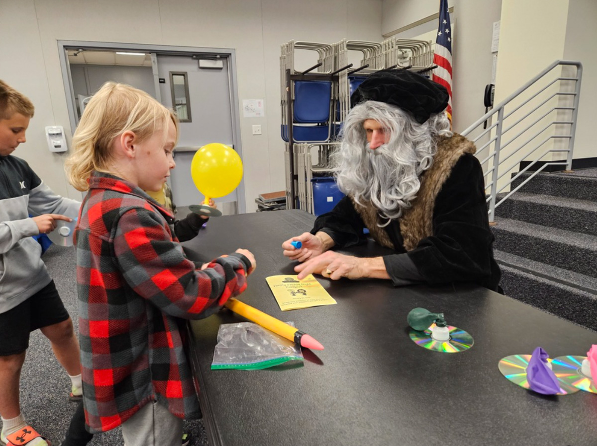Throughout the evening, students rotated between multiple stations, each offering a unique learning opportunity. With event passports in hand, participants engaged in mathematics games, explored robotics, designed and launched rockets, created magnetic slime, developed artistic projects, and engineered balloon hovercrafts. Additional activities included observing tornado simulations and engaging in other interactive experiments. A special highlight of the evening was an appearance by a representation of Leonardo da Vinci, adding a historical and artistic dimension to the event.