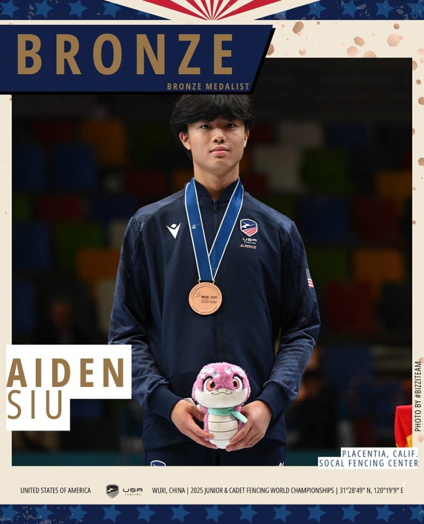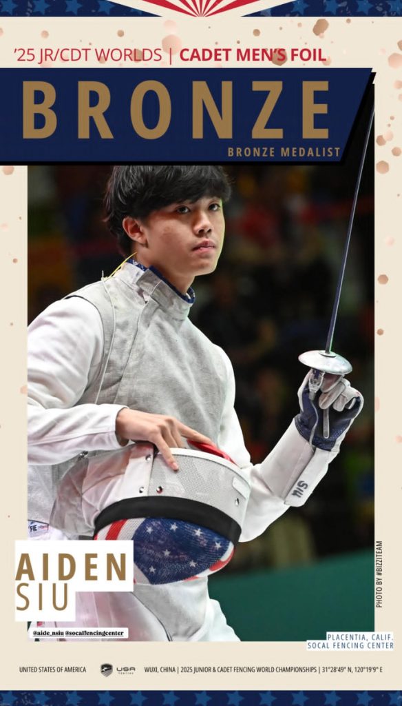 Valencia High School sophmore student Aiden Siu earned international recognition after securing the bronze medal in Men’s Foil at the 2025 World Fencing Championships. Representing Team USA in the cadet category, Aiden demonstrated exceptional skill and determination on the global stage.