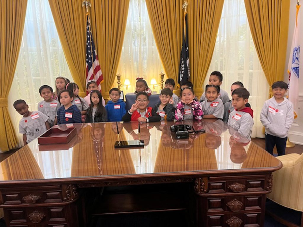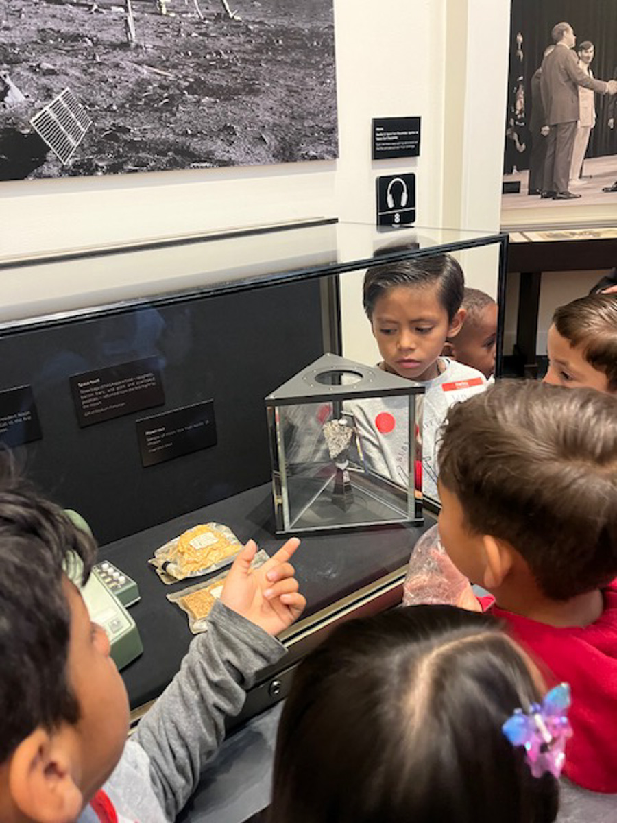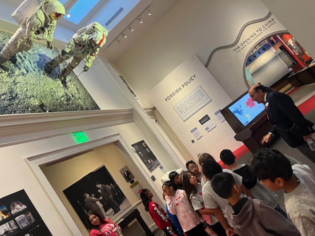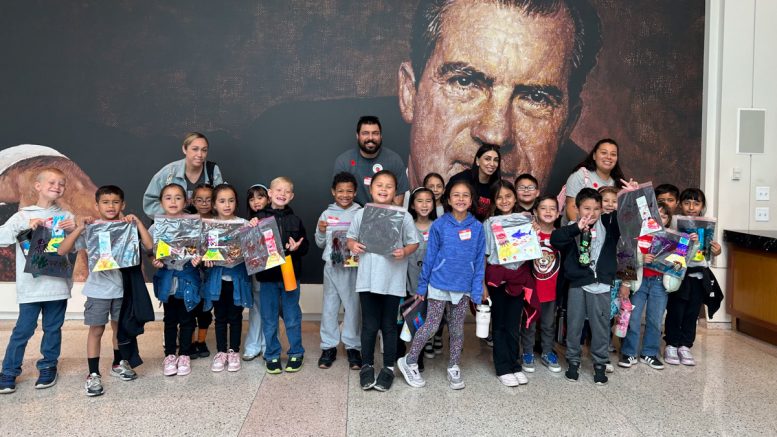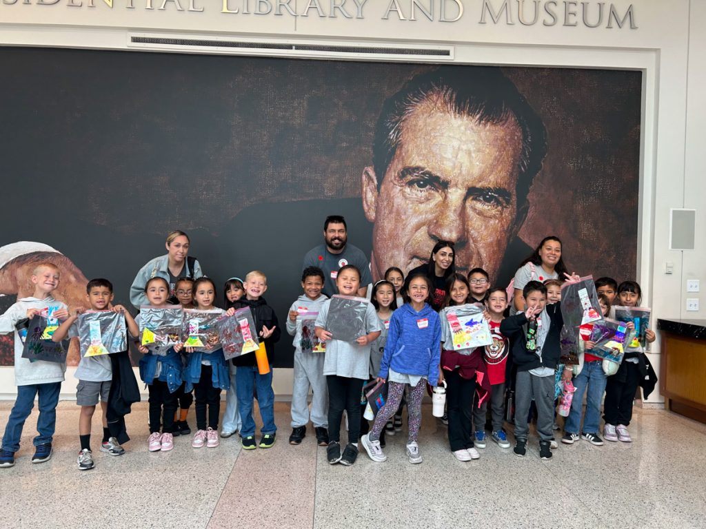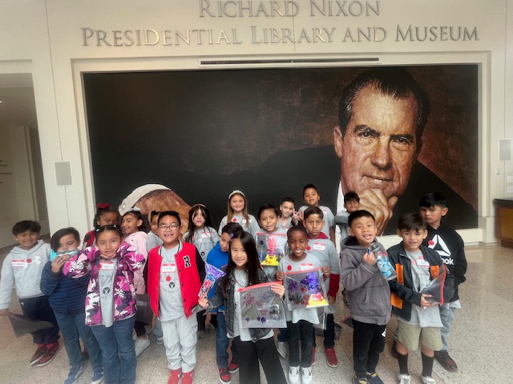 During their visit, transitional kindergarten through sixth-grade students engaged in a dynamic educational experience led by the Nixon Library’s Museum Education Specialist, Ara Carbonneau. In addition to viewing the district’s student art exhibition, attendees explored significant moments in American history, including the Apollo 11 moon landing and the passage of the Endangered Species Act. Students also participated in a docent-led tour of the museum and completed a hands-on, historically themed art project.