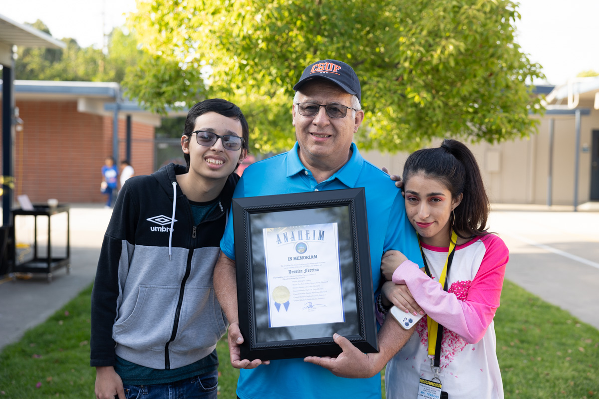 A highlight of the evening was a special recognition ceremony in honor of the late Jessica Ferrino, a beloved member of the Rio Vista community. Board President Marilyn Anderson presented a commemorative plaque to Ferrino’s family on behalf of the Anaheim City Council, which had previously adjourned a meeting in her memory.