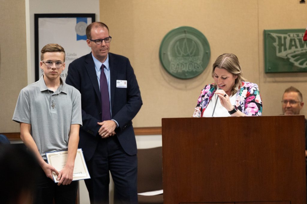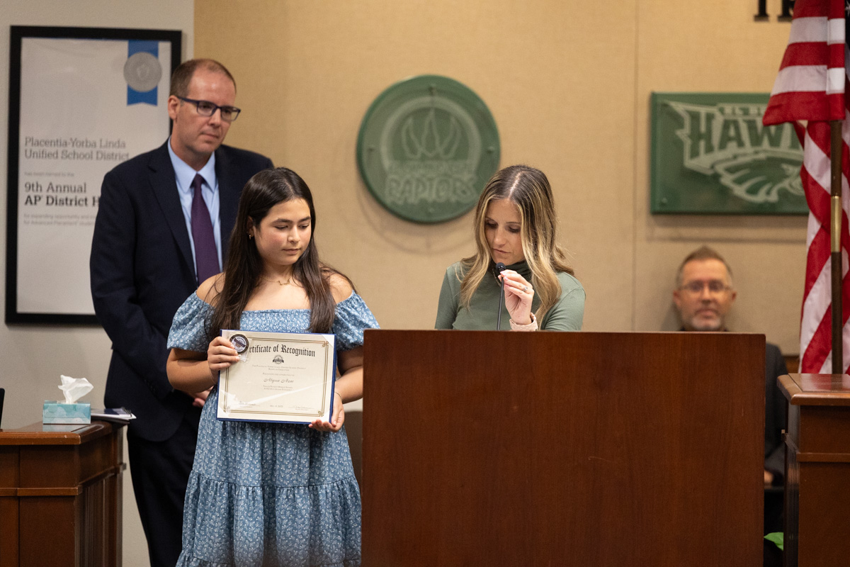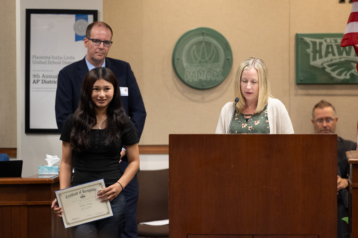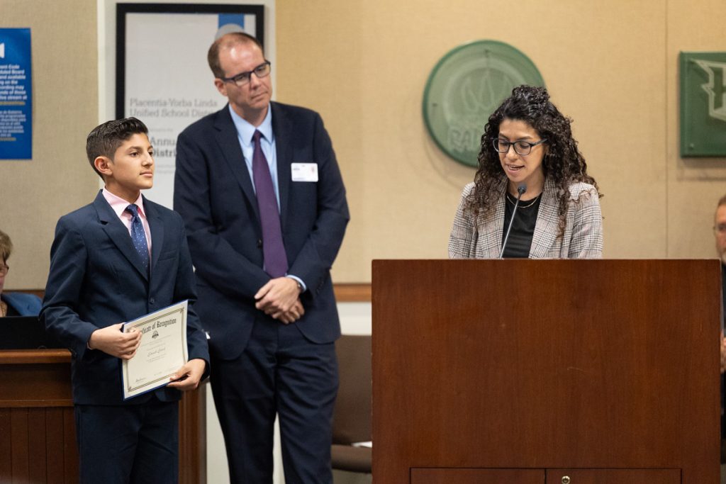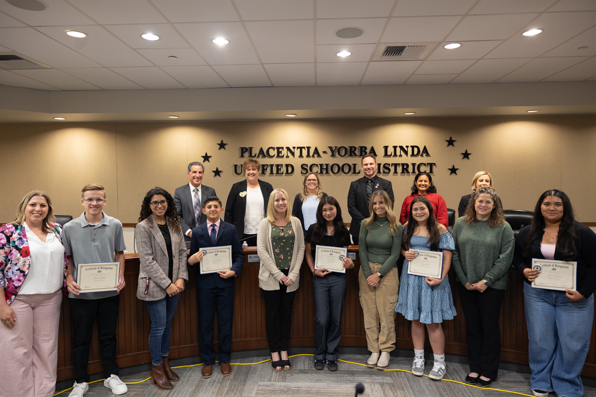 On May 6, the Placentia-Yorba Linda Unified School District (PYLUSD) Board of Education set aside time to recognize AVID 8th Grade Standouts from five middle schools. The students’ teachers, counselors, principals, and loved ones were also in attendance to show their support.
