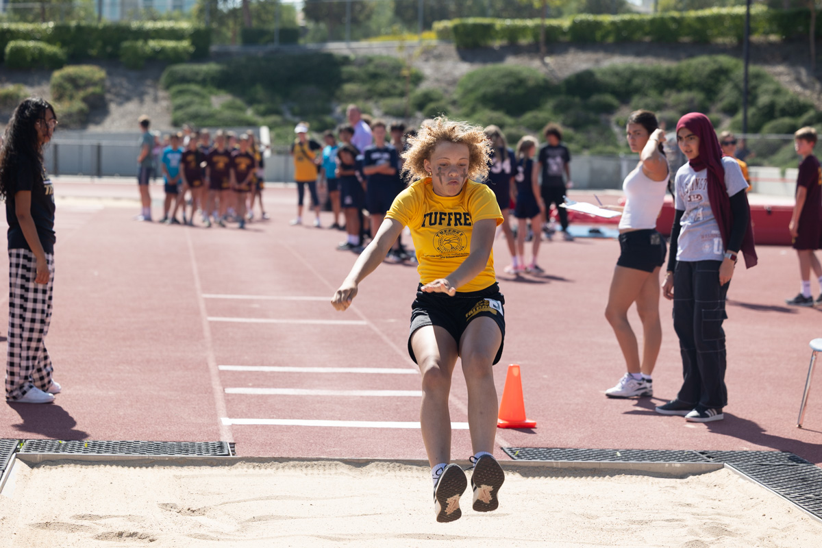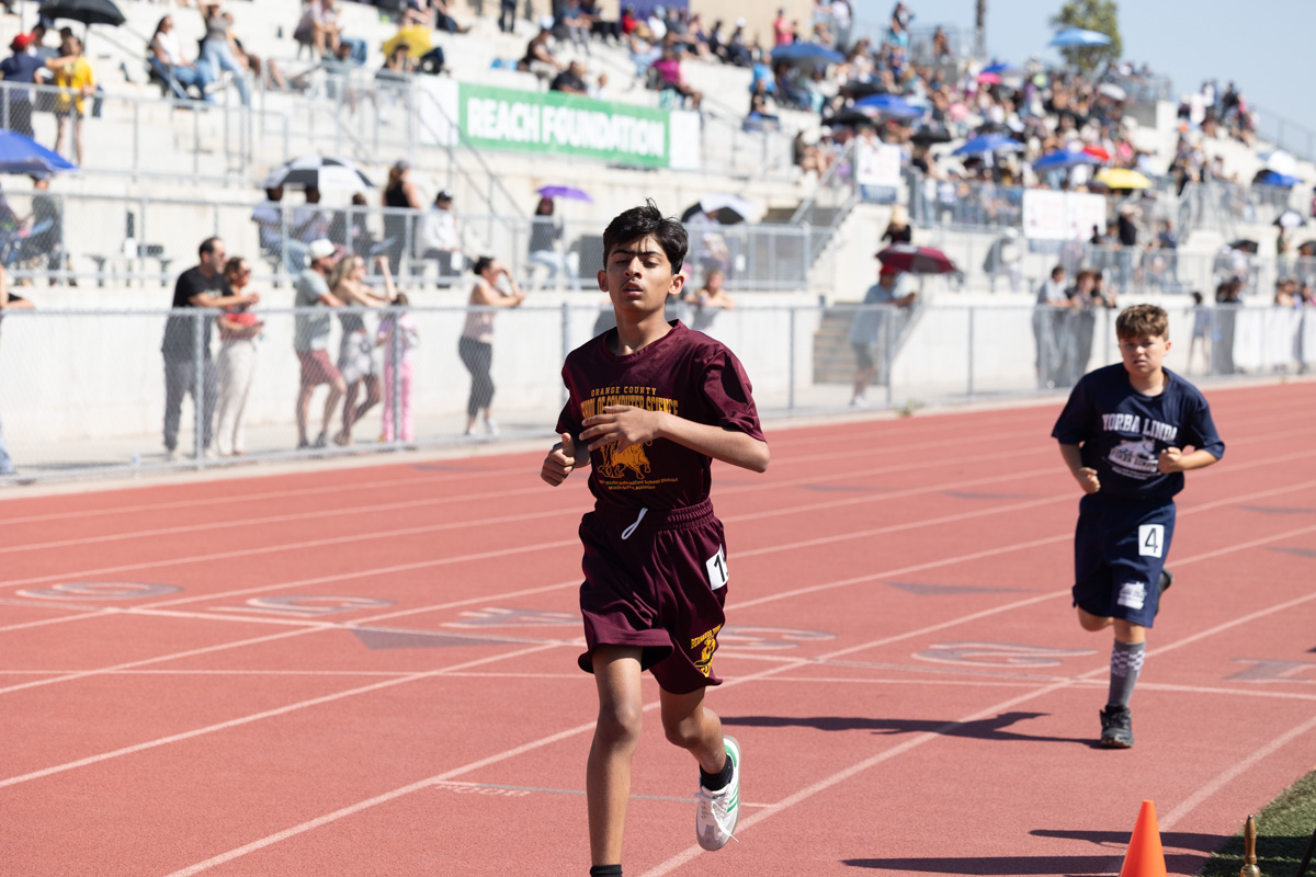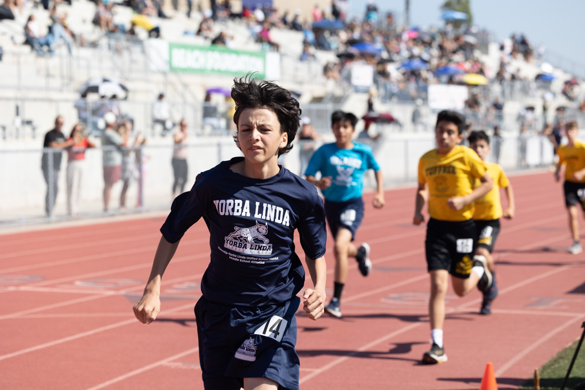 On Wednesday, May 7, 2025, the Placentia-Yorba Linda Unified School District (PYLUSD) hosted its annual Middle School Track Meet at Nathan Shapell Memorial Stadium, located on the campus of Yorba Linda High School. This signature event, which receives annual support from the REACH Foundation, brought together approximately 375 student-athletes from six district middle schools to participate in a variety of athletic competitions, including high jump, long-distance running, long jump, sprints, and other track and field events. Participating schools included the OCSCS Matadors, Kraemer Cubs, Travis Ranch Trailblazers, Tuffree Falcons, Valadez Eagles, and Yorba Linda Bobcats.
