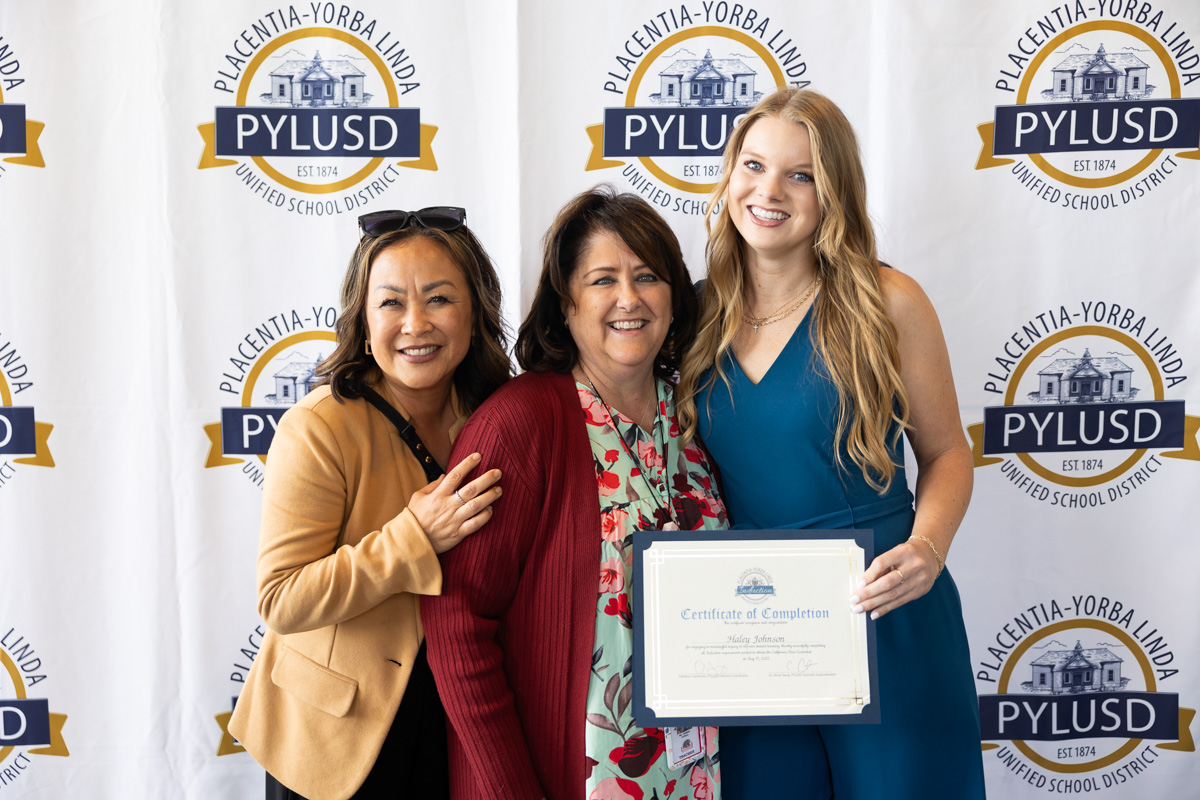 The celebration was attended by Vice President Carrie Buck, alongside members of the district’s leadership team, and Linda Manion, President of the Association of Placentia-Linda Educators (APLE). Representatives from Grand Canyon University and SchoolsFirst Federal Credit Union, sponsors of the PYLUSD Induction Program, were also in attendance. Trustee Carrie Buck and Assistant Superintendent of Educational Services Dr. Olivia Yaung addressed the attendees, offering words of wisdom and praise to the new teachers.