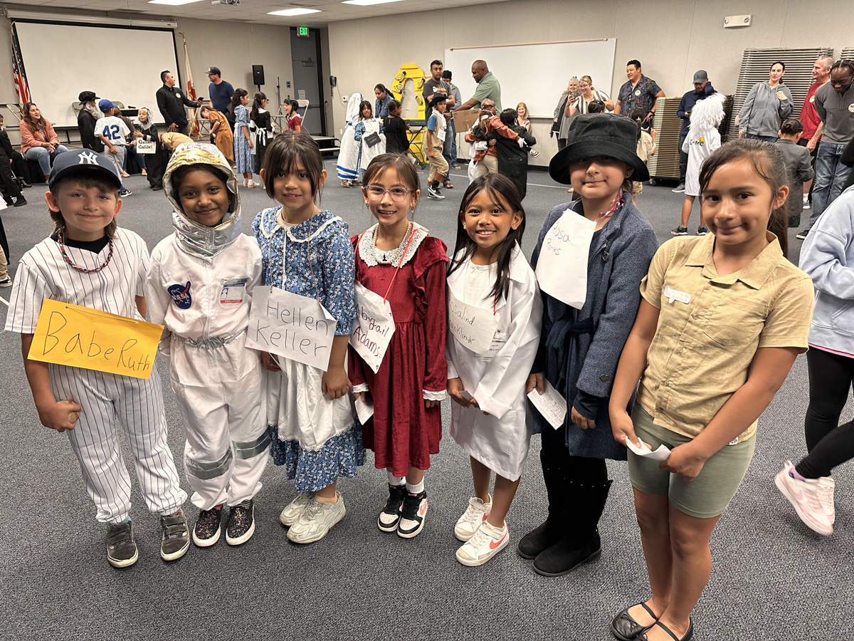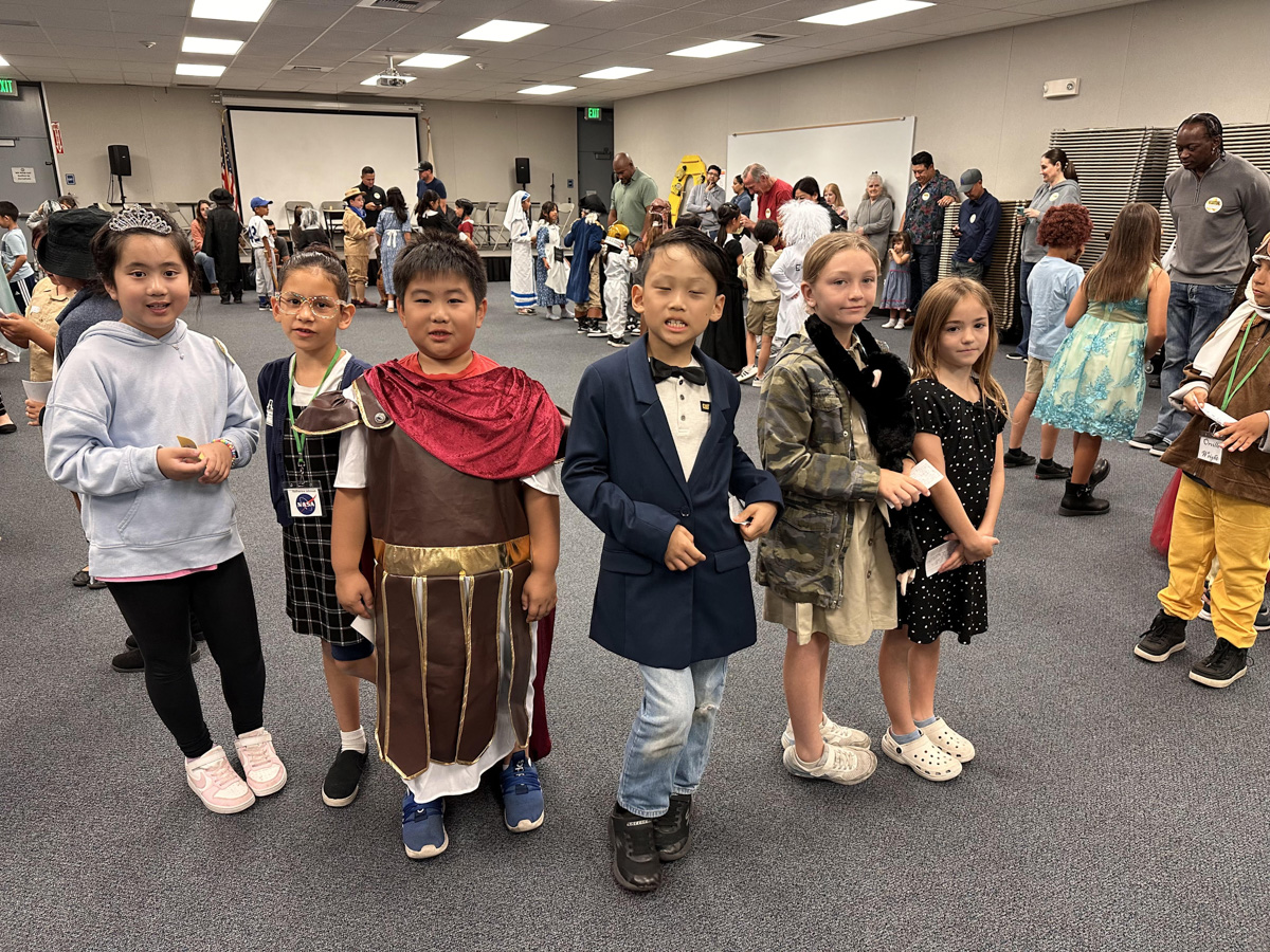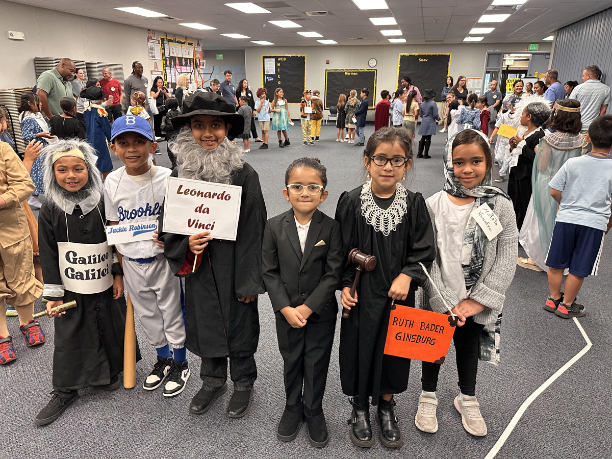 Following the event, students delivered formal oral presentations in their classrooms to further elaborate on the lives and legacies of the individuals they studied. The diverse group of historical figures represented included Albert Einstein, Rosa Parks, Marie Curie, Jane Goodall, Babe Ruth, Katherine Johnson, Queen Elizabeth II, Neil Armstrong, Walt Disney, Orville Wright, and Abraham Lincoln.