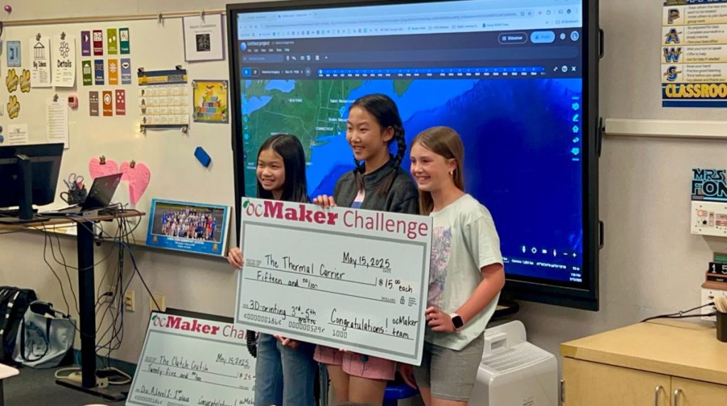 In addition, seven fifth-grade students from Linda Vista demonstrated remarkable ingenuity in the Orange County Makers Challenge. Tasked with designing or reinventing a product that addresses a real-world issue, meets a practical need, or brings joy, the students utilized the school’s 3D printing technology to develop innovative solutions. Their projects included the Clutch Crutch for enhanced mobility, the potentially life-saving Outer Airbag, the multifunctional Thermal Carrier, and the TROD—a drone designed to intelligently sort trash, recycling, and organic waste.