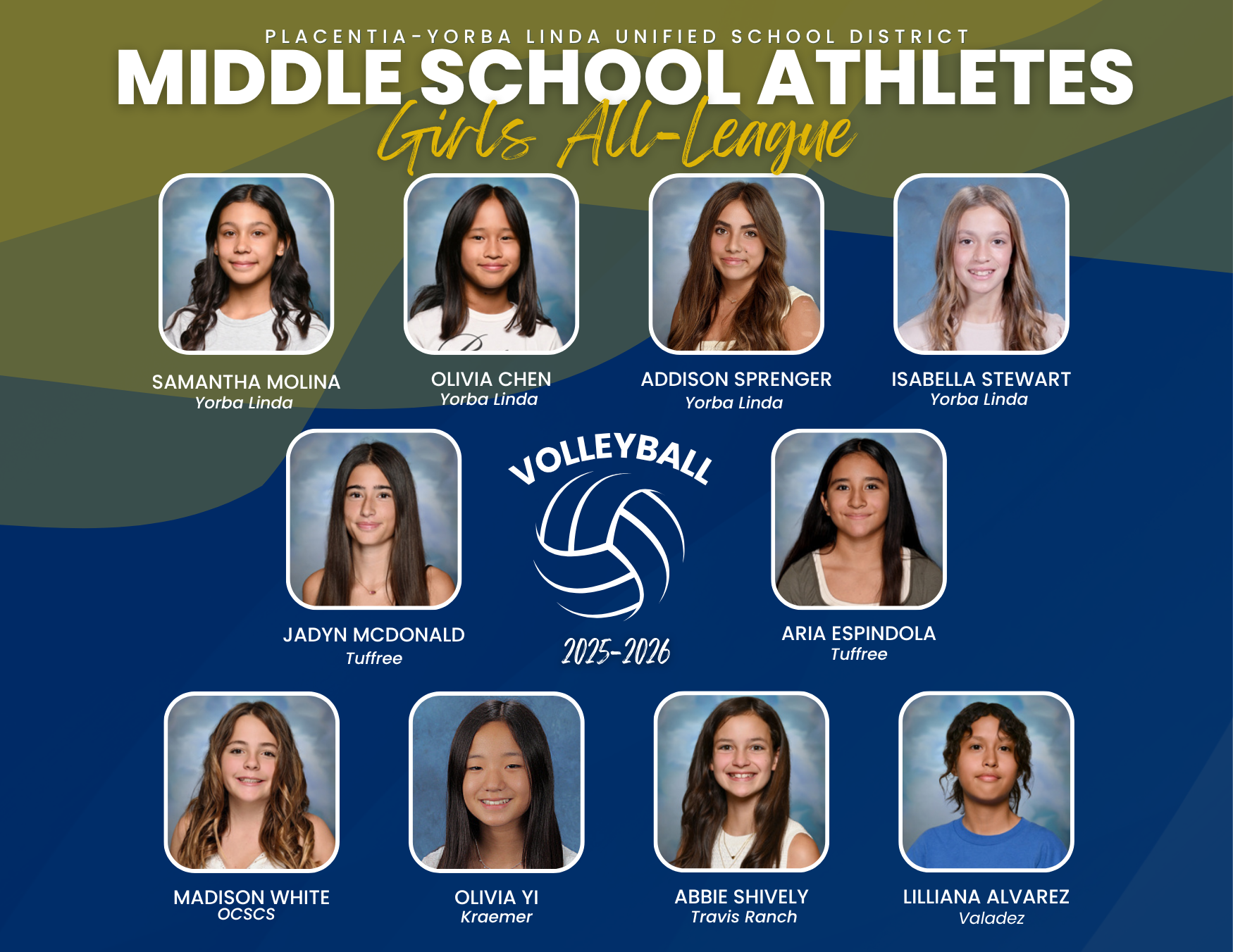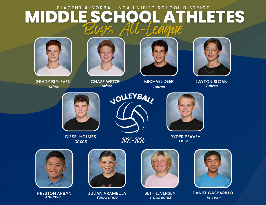 The Placentia-Yorba Linda Unified School District is excited to recognize top performers in each middle school sport. For each sport, an “All-League” team will be established to honor outstanding athletes. The process will work as follows: the tournament champions will nominate four athletes, the runner-up will nominate two, and the remaining four schools will each nominate one athlete. A total of ten boys and ten girls will be recognized from each championship. With the cross country season now concluded, the district is pleased to announce the PYLUSD Middle School All-League Athletes.