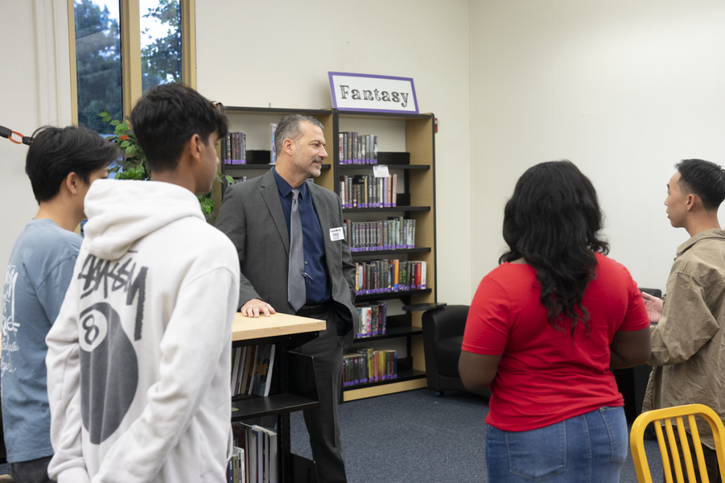 On Monday, October 13, El Dorado High School’s ED LAW Academy hosted its annual Networking Mixer Experience for freshmen students. The event brought together community professionals, district leaders, and site staff who volunteered their time to engage with students in meaningful conversations about future careers. As part of their preparation, freshmen designed and printed their own business cards, which they exchanged during the mixer as they practiced professional introductions and communication skills.