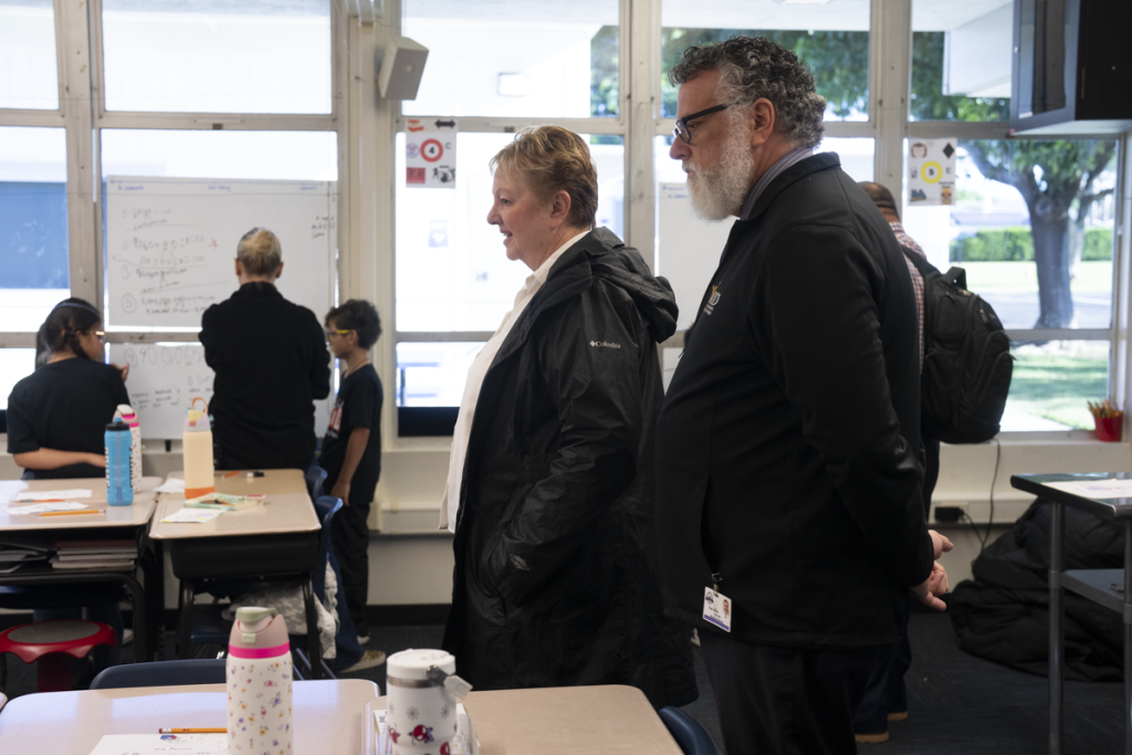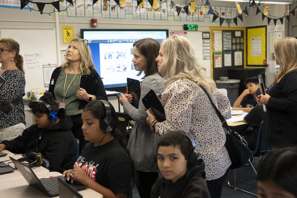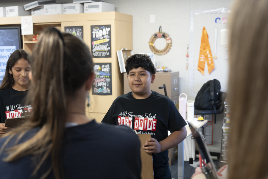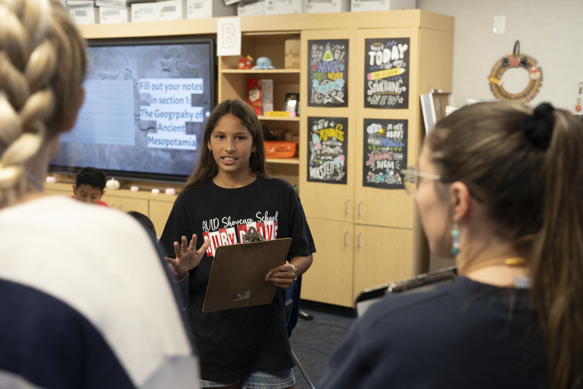 During classroom observations, student ambassadors proudly demonstrated their AVID binders and folders, illustrating effective note-taking and organizational practices. Visitors observed engaging lessons across grade levels, including philosophical chairs in first grade, collaborative writing in fourth grade, and WICOR partner work in sixth grade. The enthusiasm, confidence, and academic discourse displayed by students reflected the program’s powerful impact on learning and engagement.