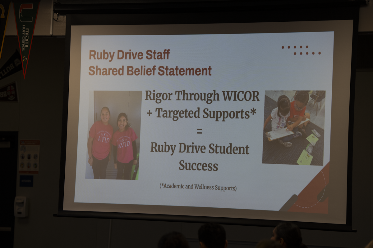 On Wednesday, October 15, Ruby Drive Elementary School hosted its annual Advancement Via Individual Determination (AVID) Showcase, highlighting the academic growth and accomplishments of students participating in the schoolwide program. The event welcomed 35 teachers and administrators from five schools within the district and three schools from neighboring districts, underscoring Ruby Drive’s continued commitment to cultivating a college-going culture and equipping students with the skills and mindsets essential for postsecondary success.