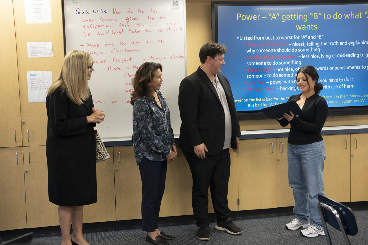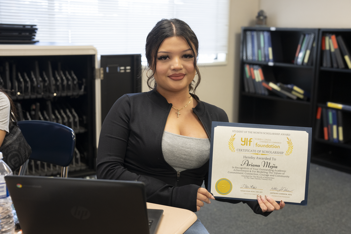 On Wednesday, October 22, the Yorba Linda Chamber of Commerce Foundation surprised El Camino Real High School senior, Ariana Mejia, by naming her the September Student of the Month.