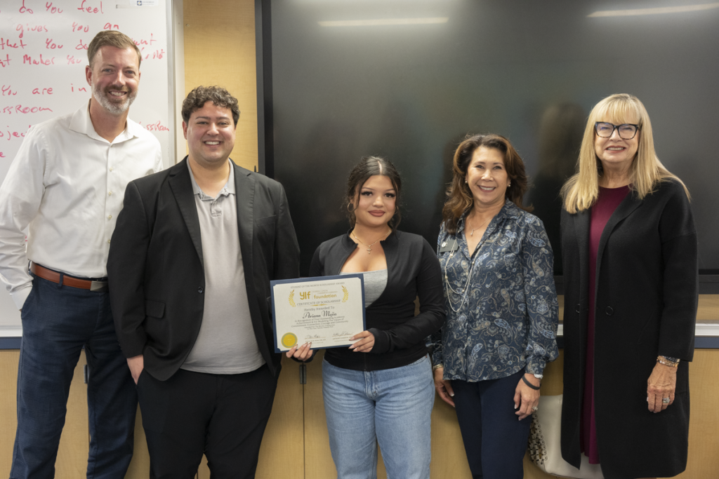 As part of the Foundation’s newly launched Student of the Month Program, Ariana received a $100 scholarship presented by Foundation President Anthony Johnson, Treasurer Kevin McCobb, Board Member Lynn Campbell, and Executive Director Susan Wan-Ross. Each month, the Foundation recognizes an outstanding student from a local high school who demonstrates academic excellence, leadership, and community engagement.