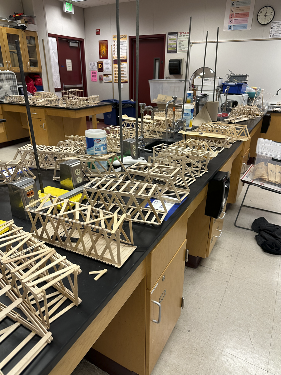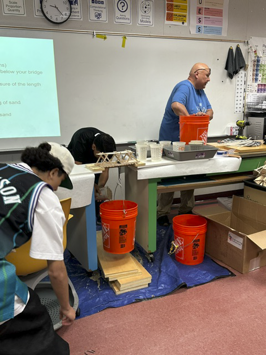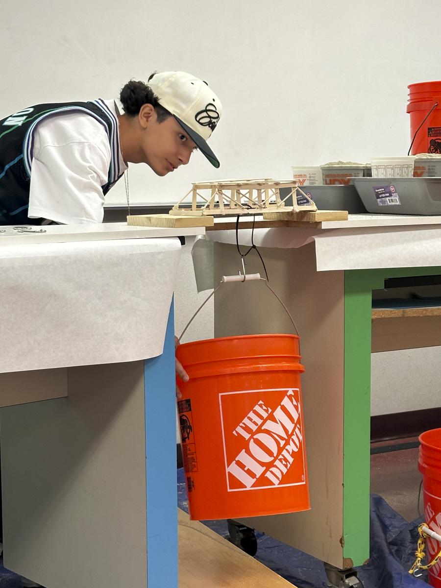Physics students at Esperanza High School recently began their unit on forces and Newton’s laws of motion by participating in an engaging hands-on engineering project. As part of this unit, students designed and constructed truss bridges capable of carrying the greatest load relative to their mass. Using standardized kits provided by Engineering Tomorrow, participants researched bridge structures, assembled their designs, and tested them to the point of failure. They then analyzed the distribution of forces within their bridges and calculated load-to-weight ratios, with many students astonished to discover their wooden structures could support more than 23 kilograms (51 pounds) of sand.