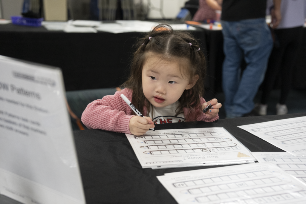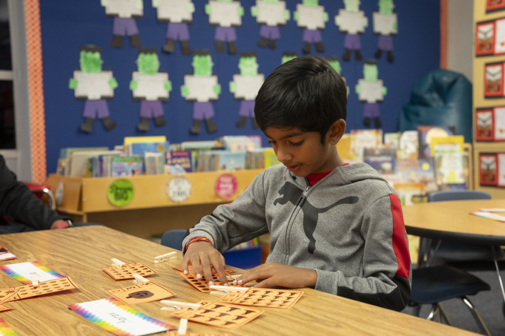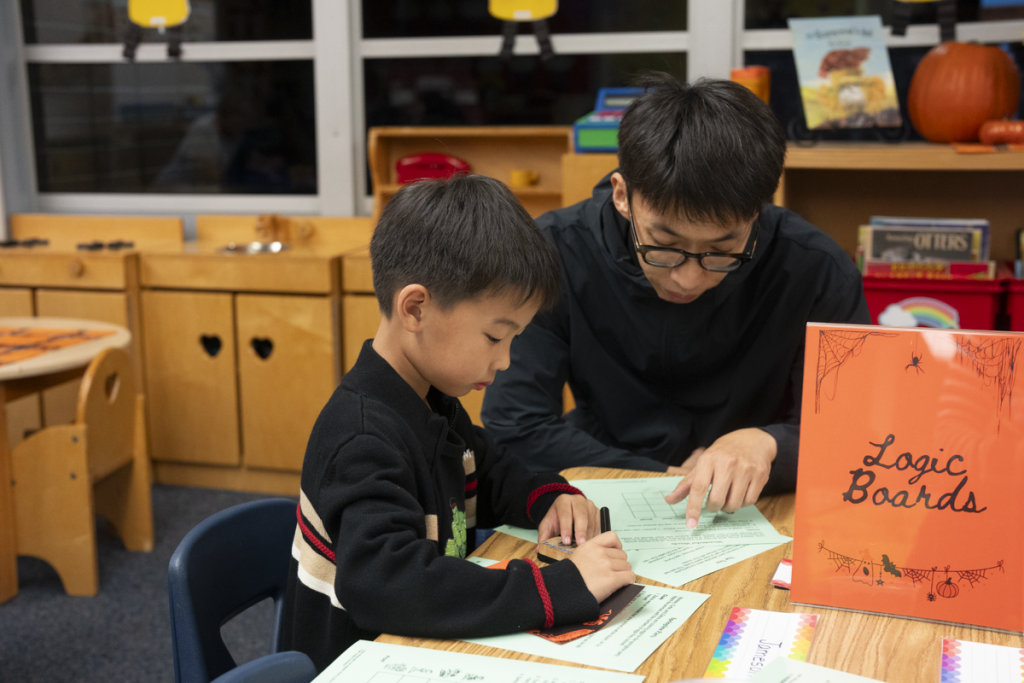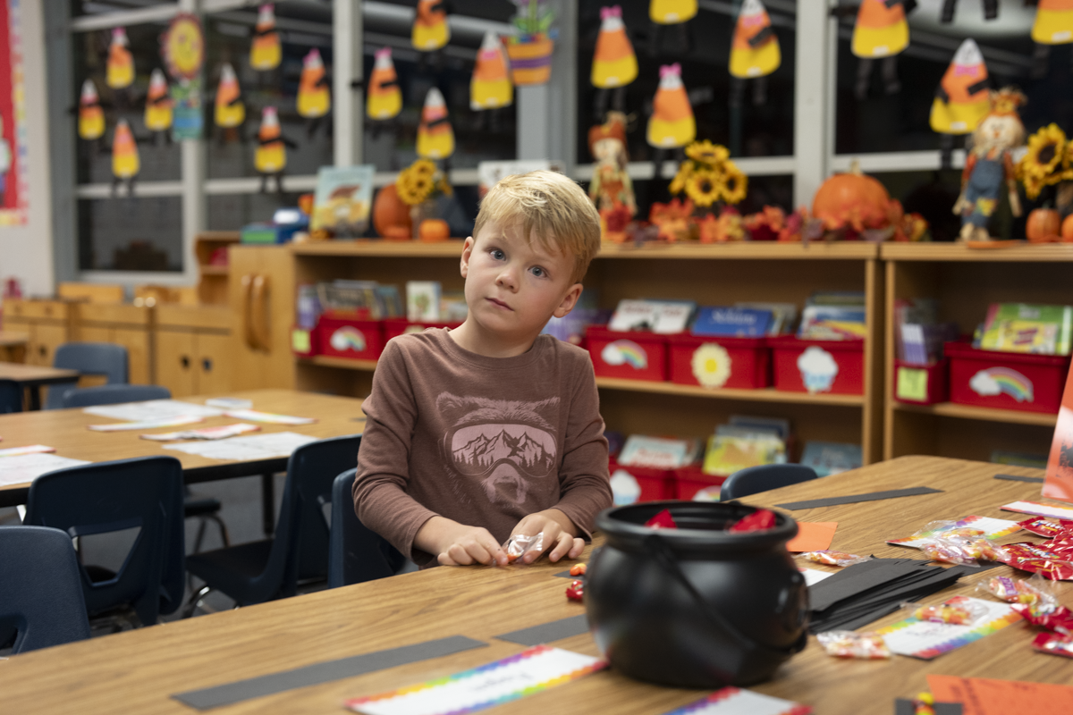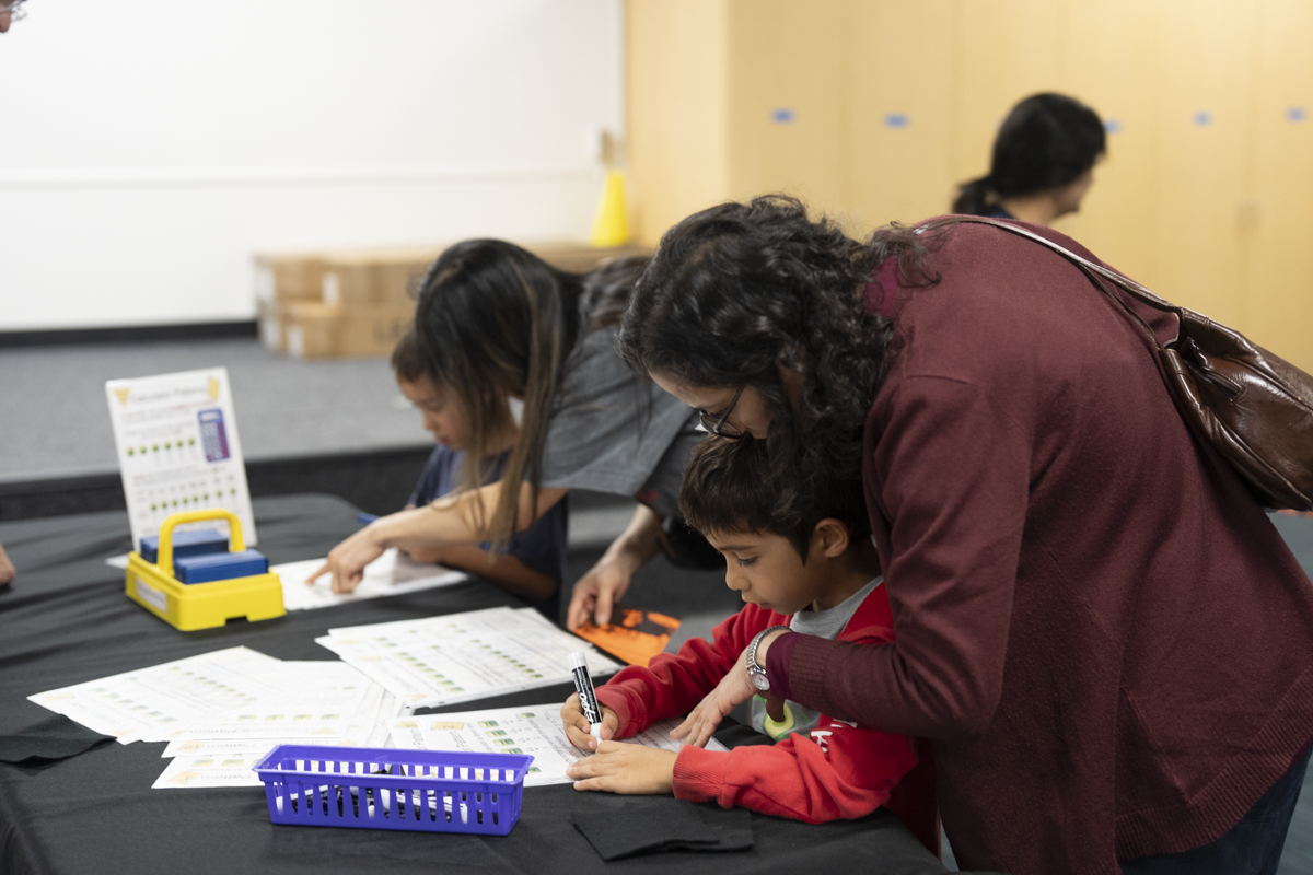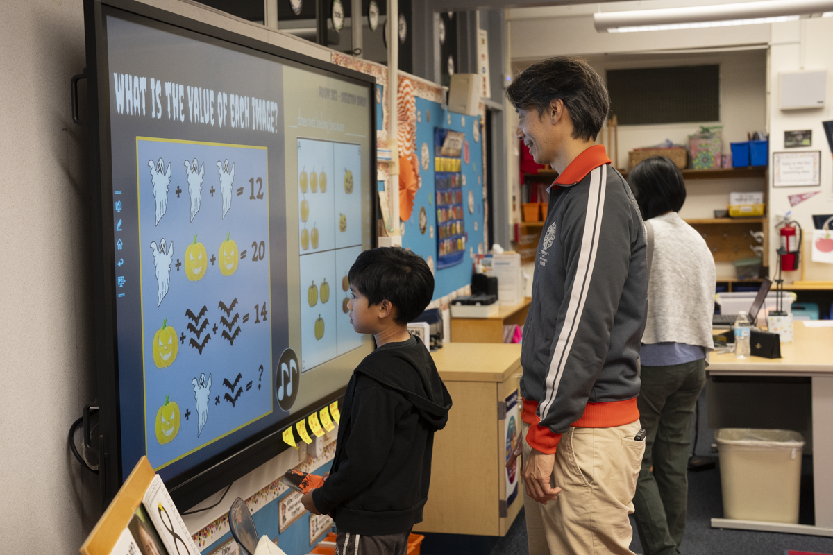 Throughout the evening, families collaborated on interactive challenges that included pumpkin patterns, spooky story problems, estimation games, and shape-building activities. Each classroom offered unique opportunities for students and their families to problem-solve, think critically, and apply mathematical concepts in creative ways. The festive theme and playful environment encouraged participation from learners of all ages and skill levels, while many activities were intentionally designed to be easily replicated at home to extend learning beyond the classroom.