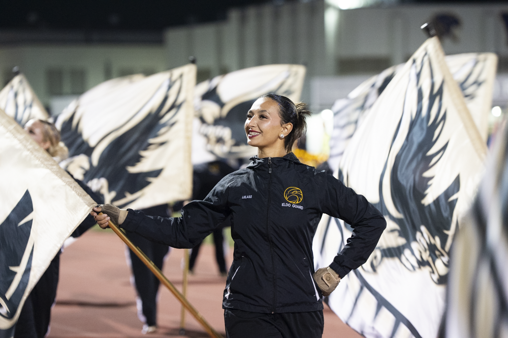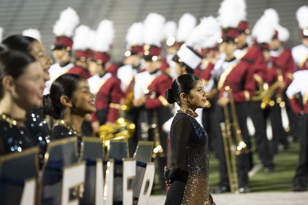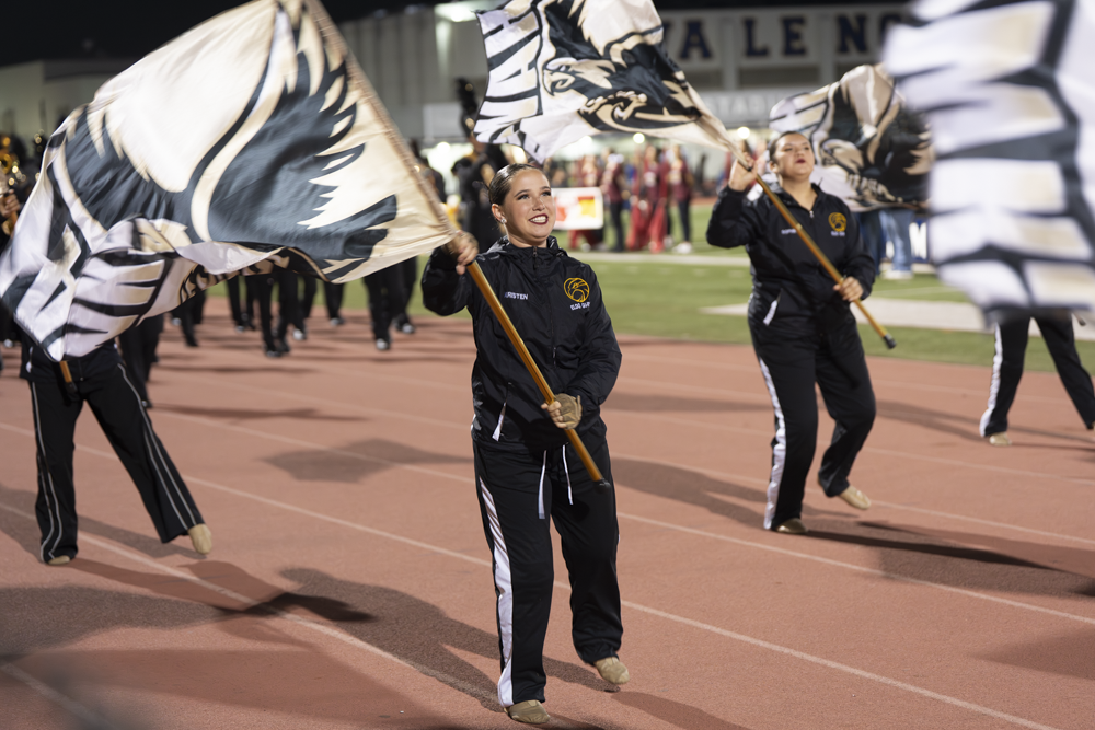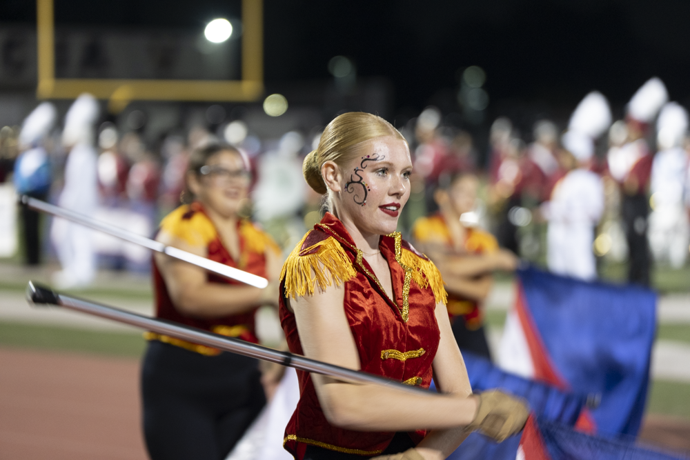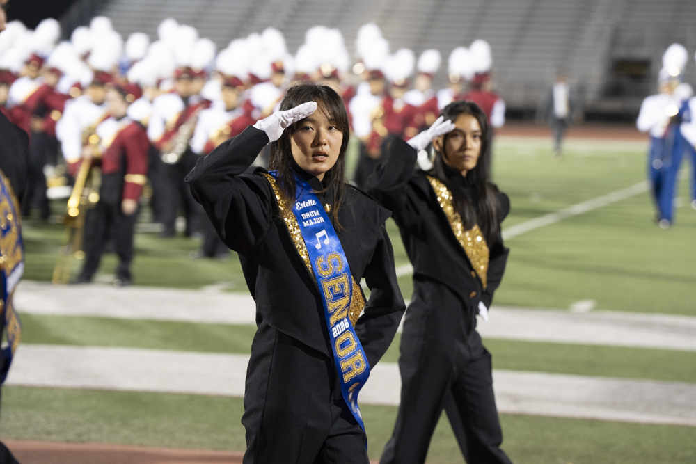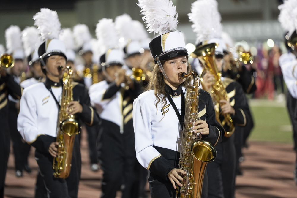 Under the direction of Taylor Smith, co-band director at El Dorado High School, all ten bands united on the field to perform stirring renditions of “The Star-Spangled Banner” and “Sounds of Sousa.” After a brief intermission, the district’s high school drumlines delivered a dynamic group performance under the leadership of Eric Samson, also co-band director at El Dorado High School. Each high school then presented its individual field show, highlighting the unique artistry, precision, and spirit of its music program.