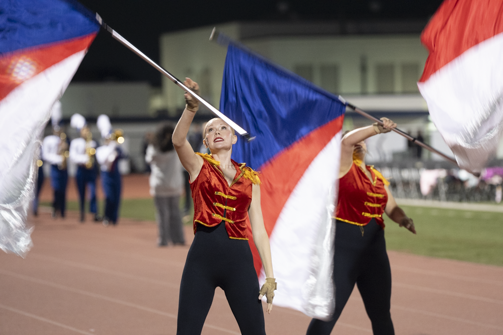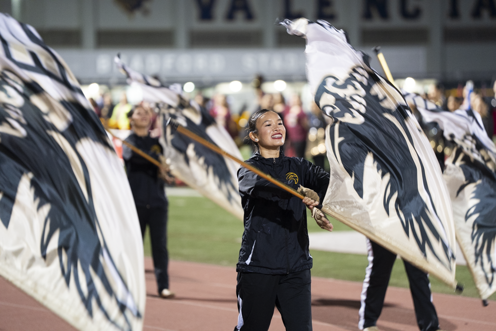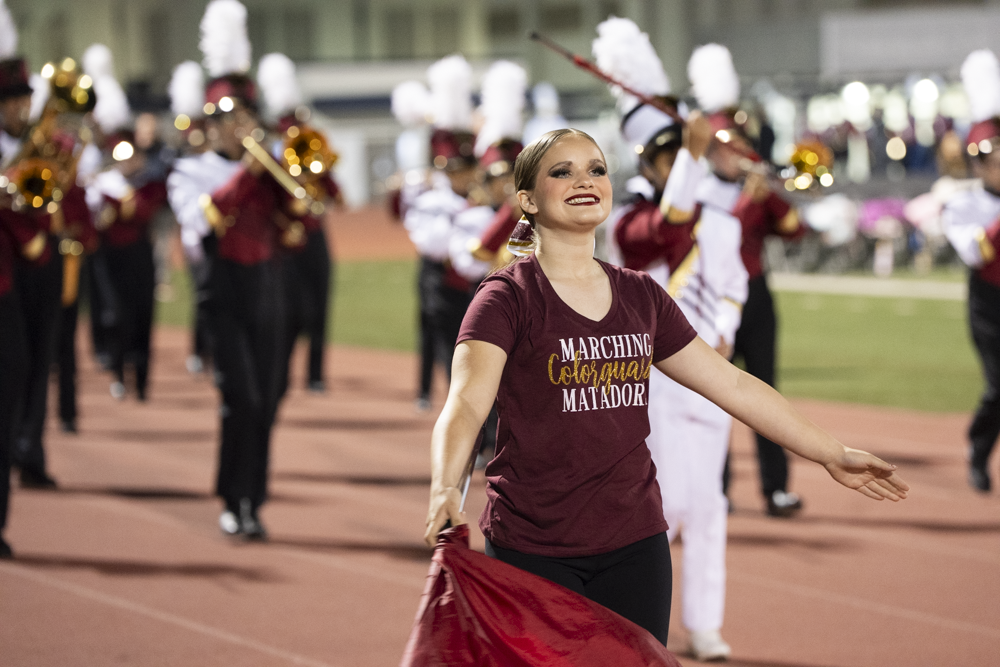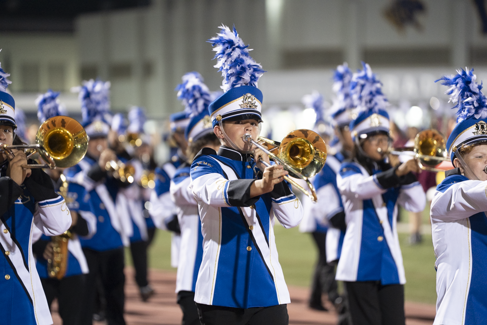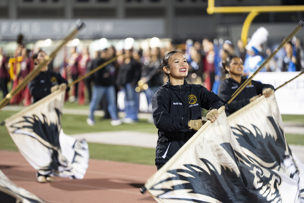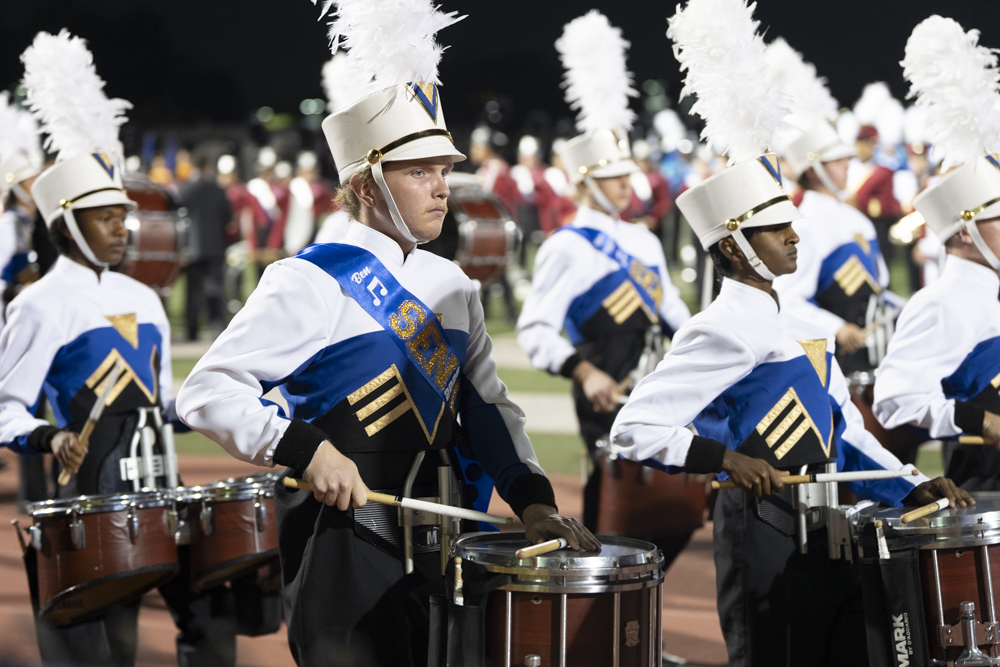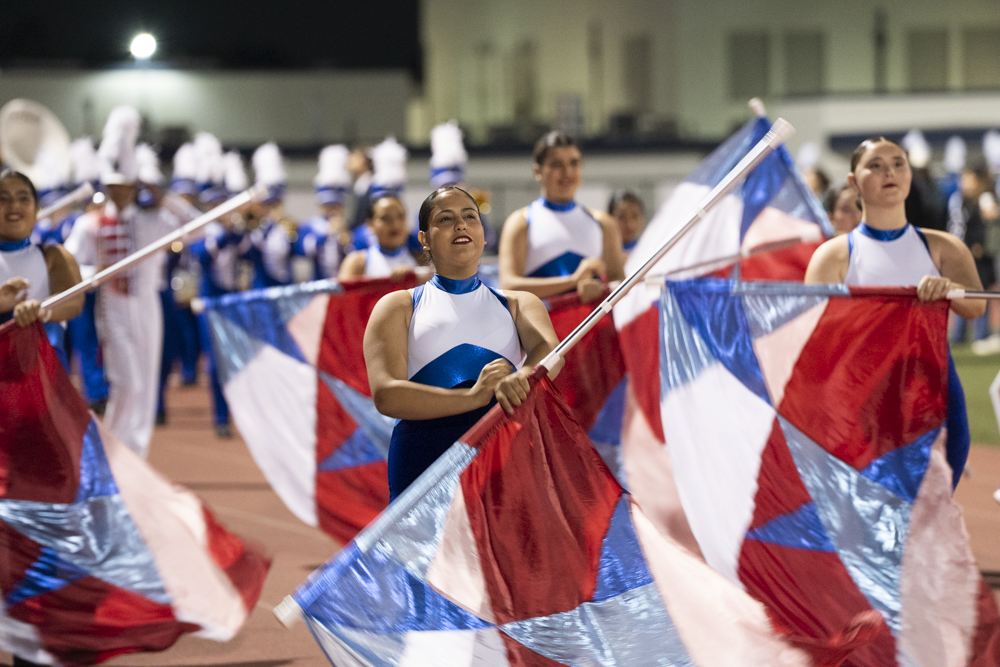 Under the direction of Taylor Smith, co-band director at El Dorado High School, all ten bands united on the field to perform stirring renditions of “The Star-Spangled Banner” and “Sounds of Sousa.” After a brief intermission, the district’s high school drumlines delivered a dynamic group performance under the leadership of Eric Samson, also co-band director at El Dorado High School. Each high school then presented its individual field show, highlighting the unique artistry, precision, and spirit of its music program.