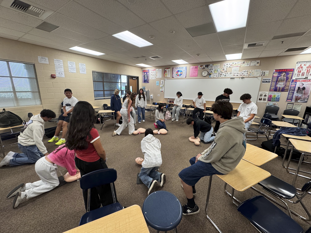 On Thursday, November 6, Yorba Linda High Shoool students enrolled in Mr. Nick Gerasimou’s Health Education course concluded their unit on nutrition, which included instruction on exercise, healthy eating, cholesterol management, and the distinction between beneficial and harmful fats. Following the completion of this unit, students transitioned to a new instructional focus covering tobacco, alcohol, drugs, and medicine. As part of this comprehensive curriculum, students also participated in Cardiopulmonary Resuscitation (CPR) and first aid instruction.