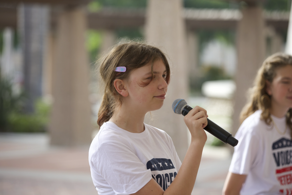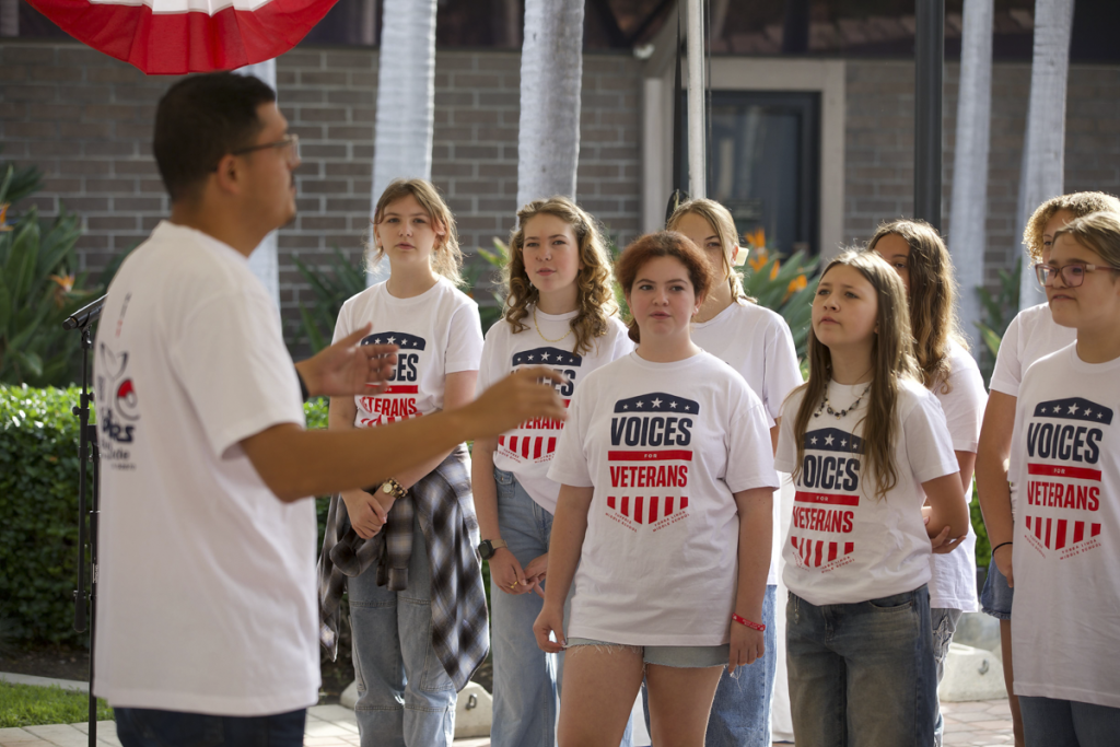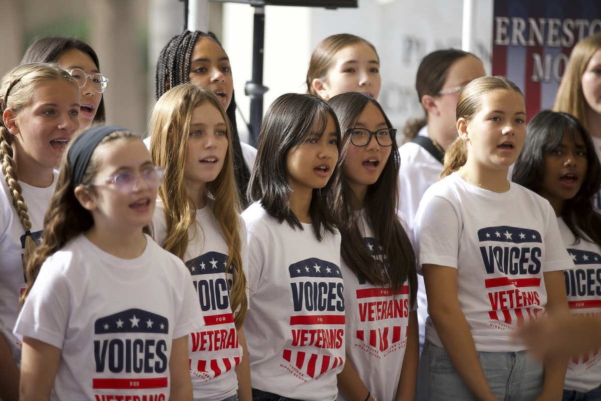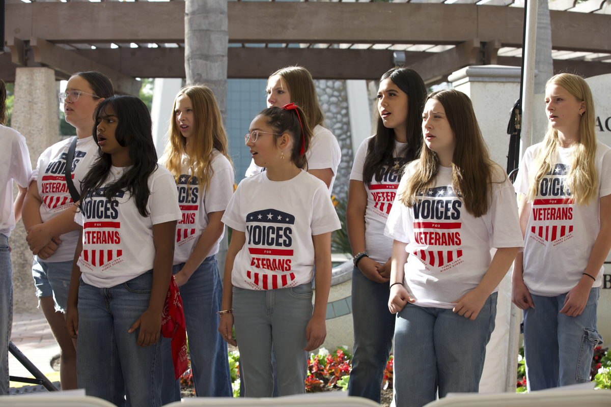 On Tuesday, November 11, choir students from Tuffree Middle School and Yorba Linda Middle School proudly represented their campuses by performing at the City of Placentia’s annual Veterans Day Ceremony. Under the skilled direction of music educators Mr. Marlon Santizo and Mr. Robert Seitz, students presented a series of musical selections, including a respectful and heartfelt performance of the National Anthem.