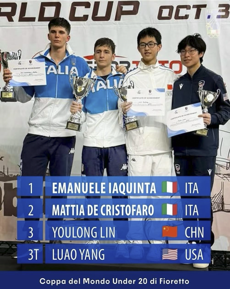 Parkview School and Universal Sports Institute student Andrew Lin, who is dually enrolled at Yorba Linda High School, achieved an outstanding milestone at the World Junior Cup held Oct. 30- Nov.2 in Istanbul, Turkey. Competing against 308 elite fencers representing 48 countries, Andrew exhibited exceptional athletic ability, strategic focus, and perseverance, ultimately earning a bronze medal on the international stage.