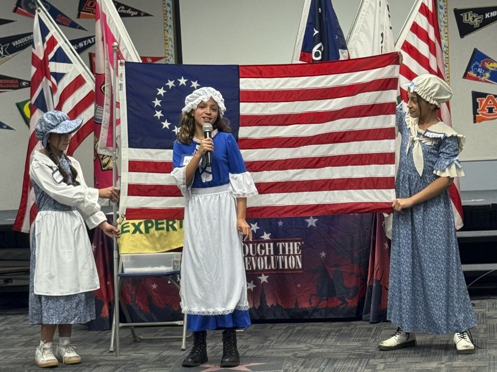 Working in teams, students assumed the roles of notable historical figures from the Revolutionary era. Through research, memorization, and oral presentations delivered to peers and family members, students demonstrated their understanding of key historical concepts while earning points as part of a structured, gamified learning model. In addition, students reenacted significant battle scenes from the Revolutionary War, further reinforcing their comprehension of major events and their historical significance.