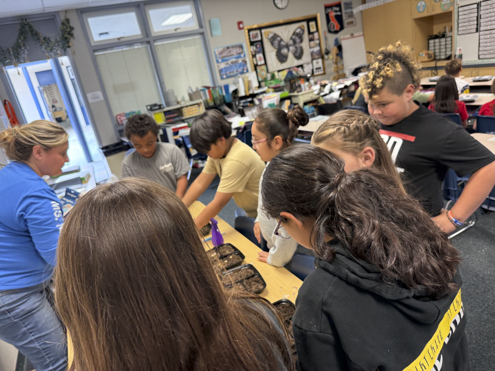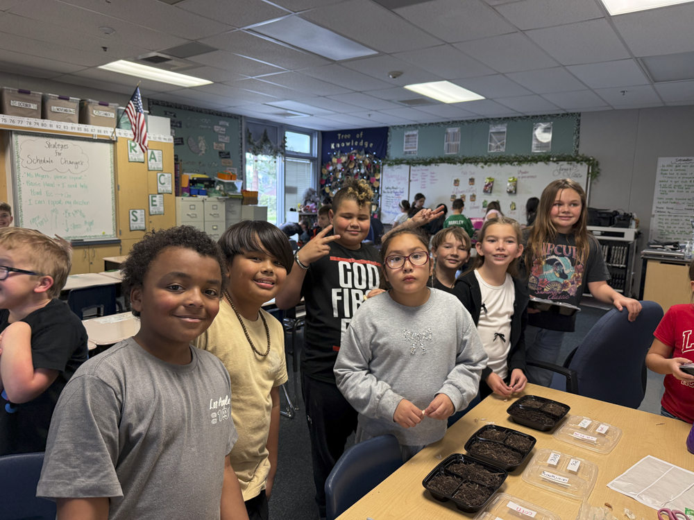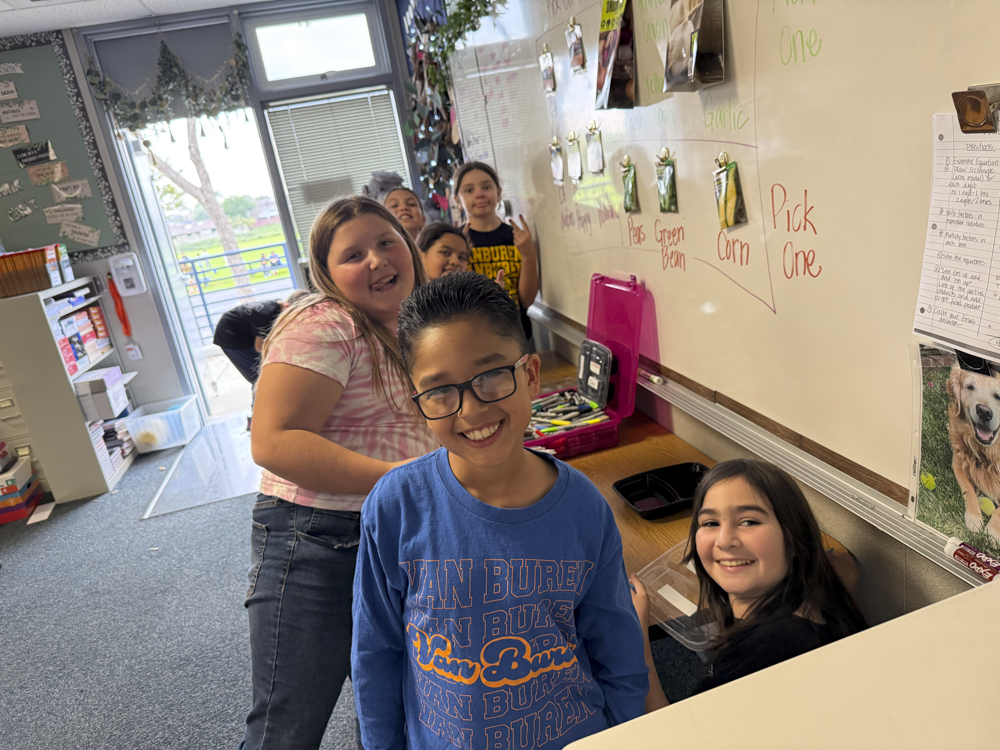 Hands-on learning also took center stage in the fourth grade classrooms at Van Buren Elementary School as students brought history to life through a collaborative social studies project. After studying pueblos, students in Ms. Myers’ fourth grade special education class partnered with Mrs. Radicelli’s fourth graders for an interactive learning experience. Together, students planted Pueblo crops, gaining a deeper understanding of how Native peoples cultivated food while connecting historical concepts to real-world applications. Working side by side, students explored the relationship between past and present, strengthening both academic knowledge and peer collaboration.