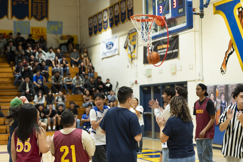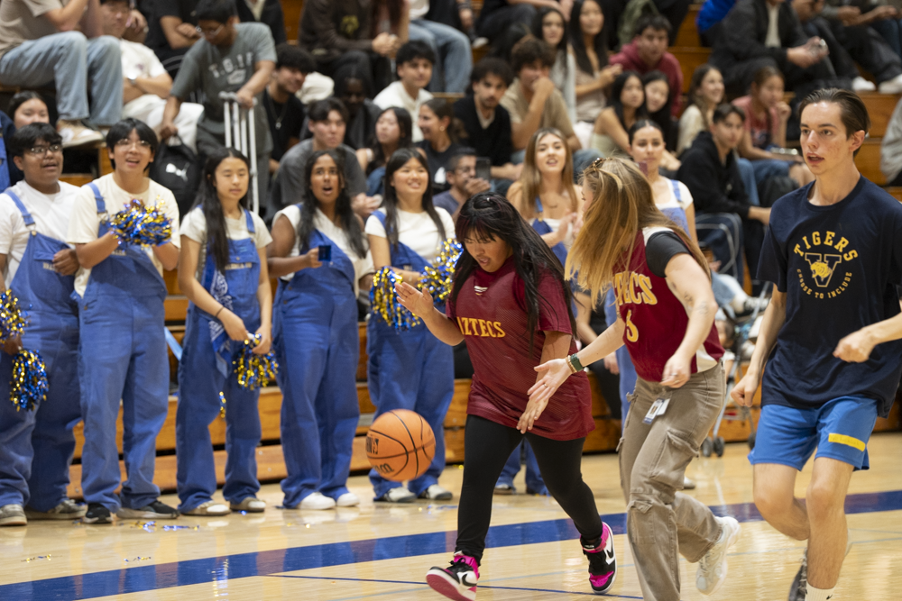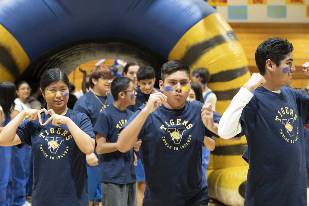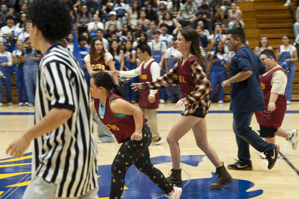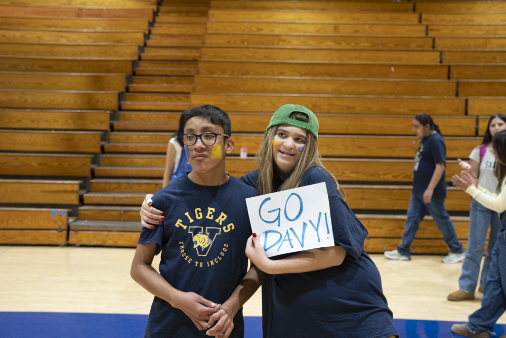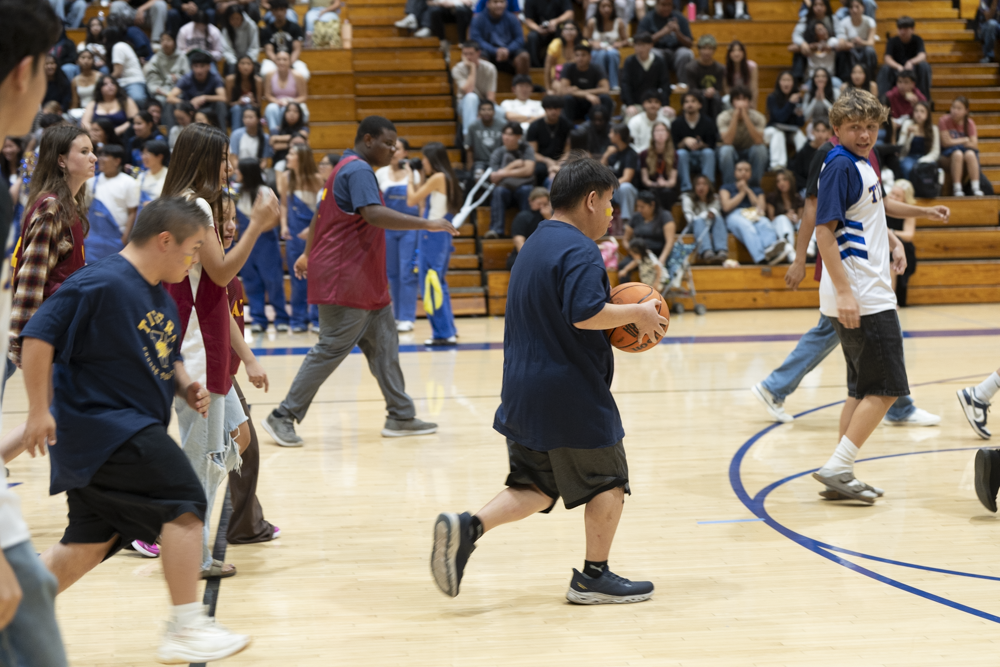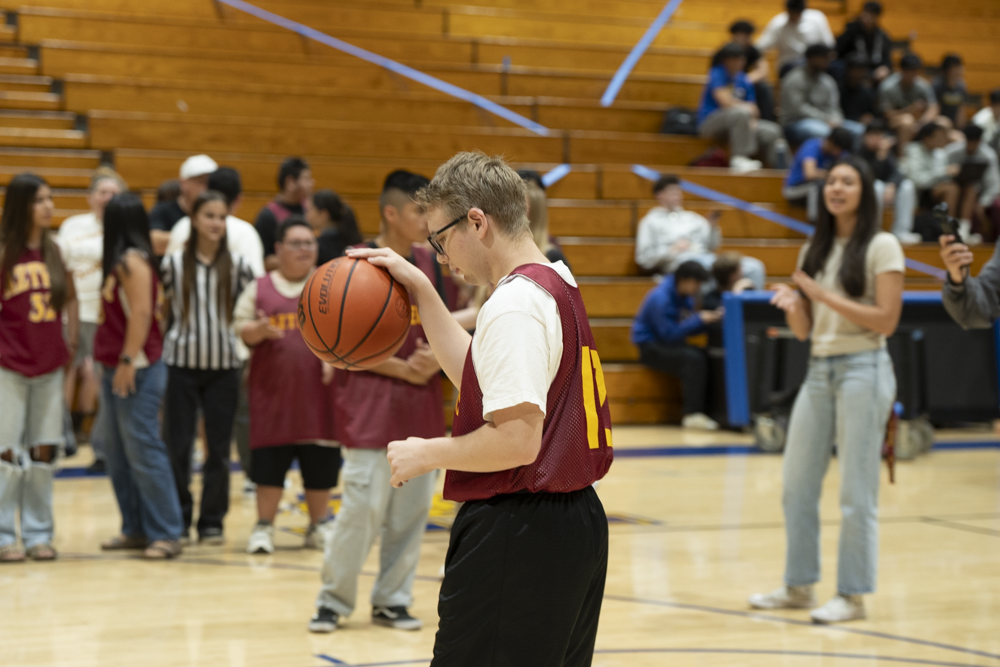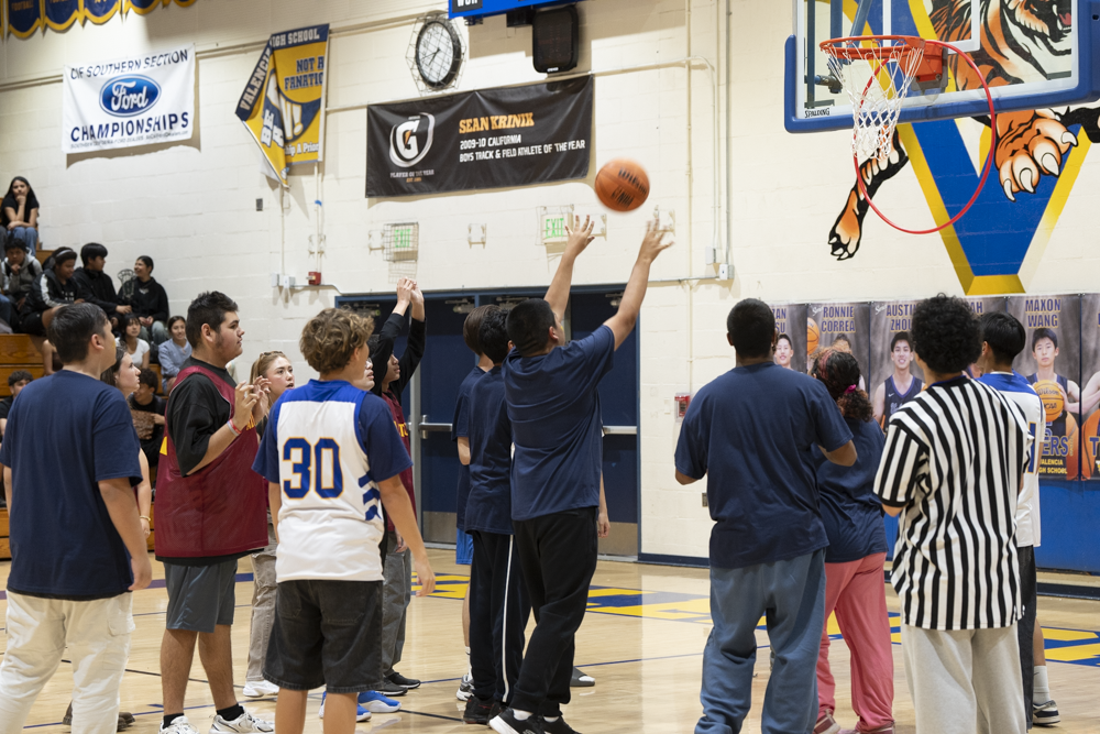 On February 25, Valencia High School hosted Esperanza High School for a Unified Sports basketball game during the lunch period. Special education students and general education partners from both schools participated in a friendly and spirited intramural contest. A large and enthusiastic crowd of students, staff, and community members from both campuses and across the District gathered to cheer and demonstrate their support.
