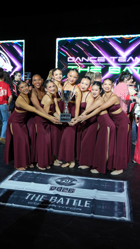 The team’s Small Contemporary routine not only secured the National Championship title but also earned the Battle Championship, a distinction awarded after a competitive elimination round featuring routines from more than 150 schools, with only 17 advancing to the final battle round.
